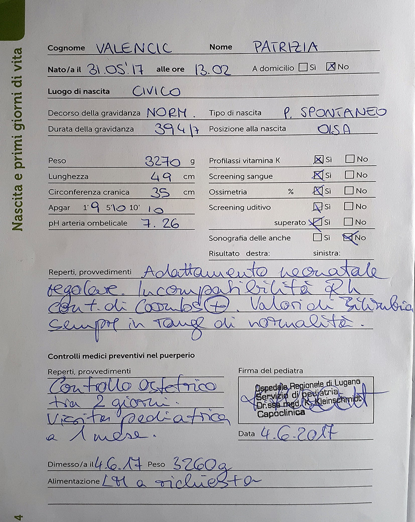 tam rodila hčerkica Patrizia 31.5.2017. Švicarske oblasti so nama