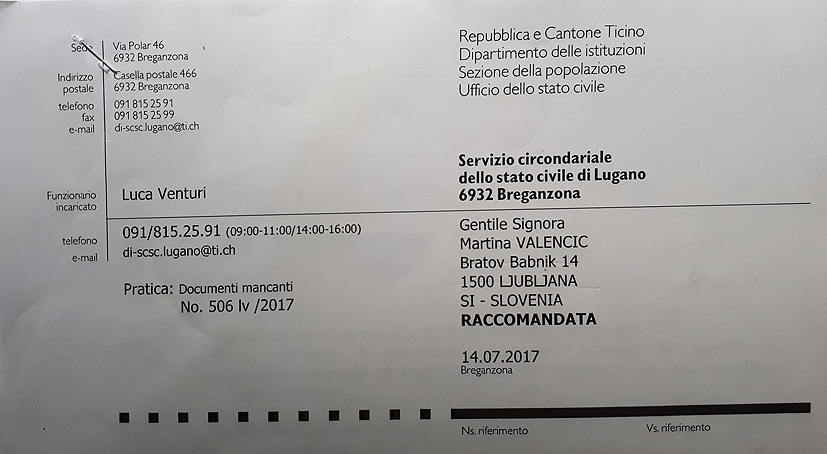 matičnega urada v Luganu, Luca Venturi je tako zakompliciral to zadevo,