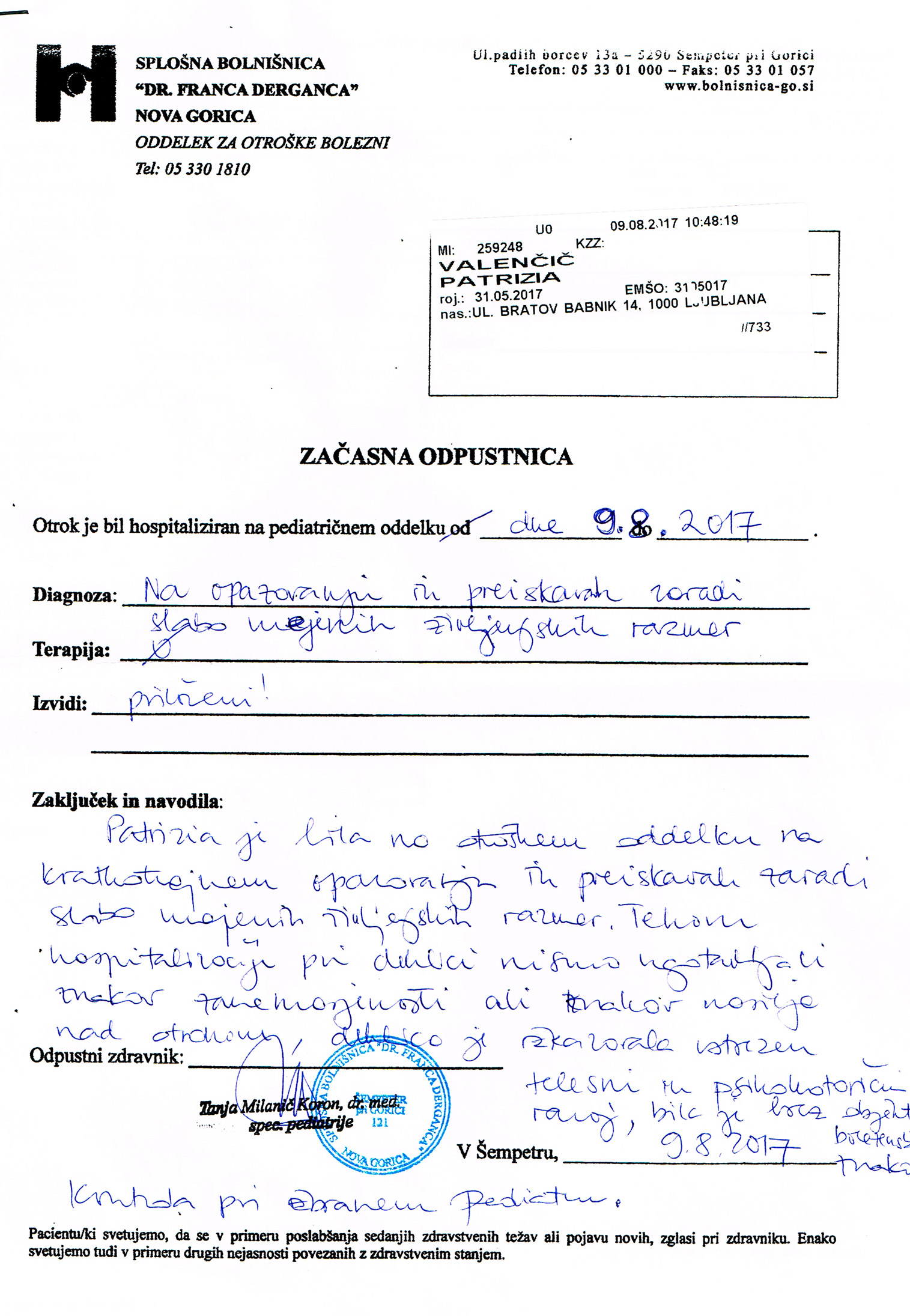 prilagamo zdravniški izvid.